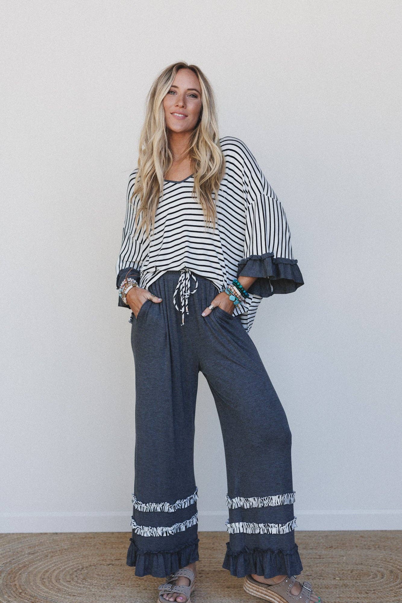 * Long sleeve crop top and wide-leg pants