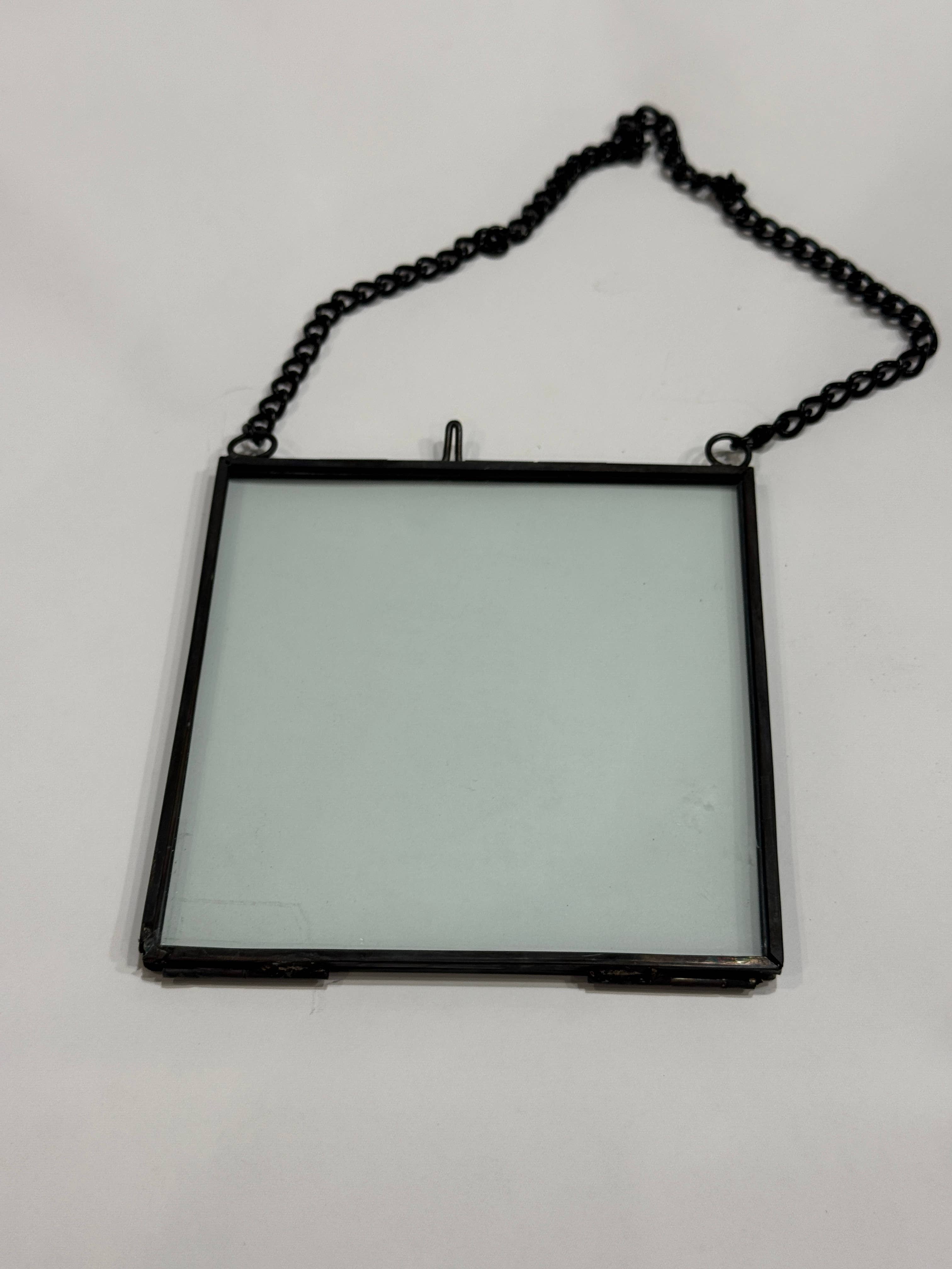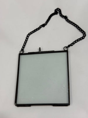 4" x 4" glass frame with Chain Hanger. These hanging frames can be used to display pressed flowers, petals, leaves, or to showcase pictures. Because of the adaptability of their style, they will add a distinctive complementary nest for an old-style photograph or an appropriate modern milieu for a contemporary one. Use our zinc frames for a variety of purposes. The possibilities are endless.