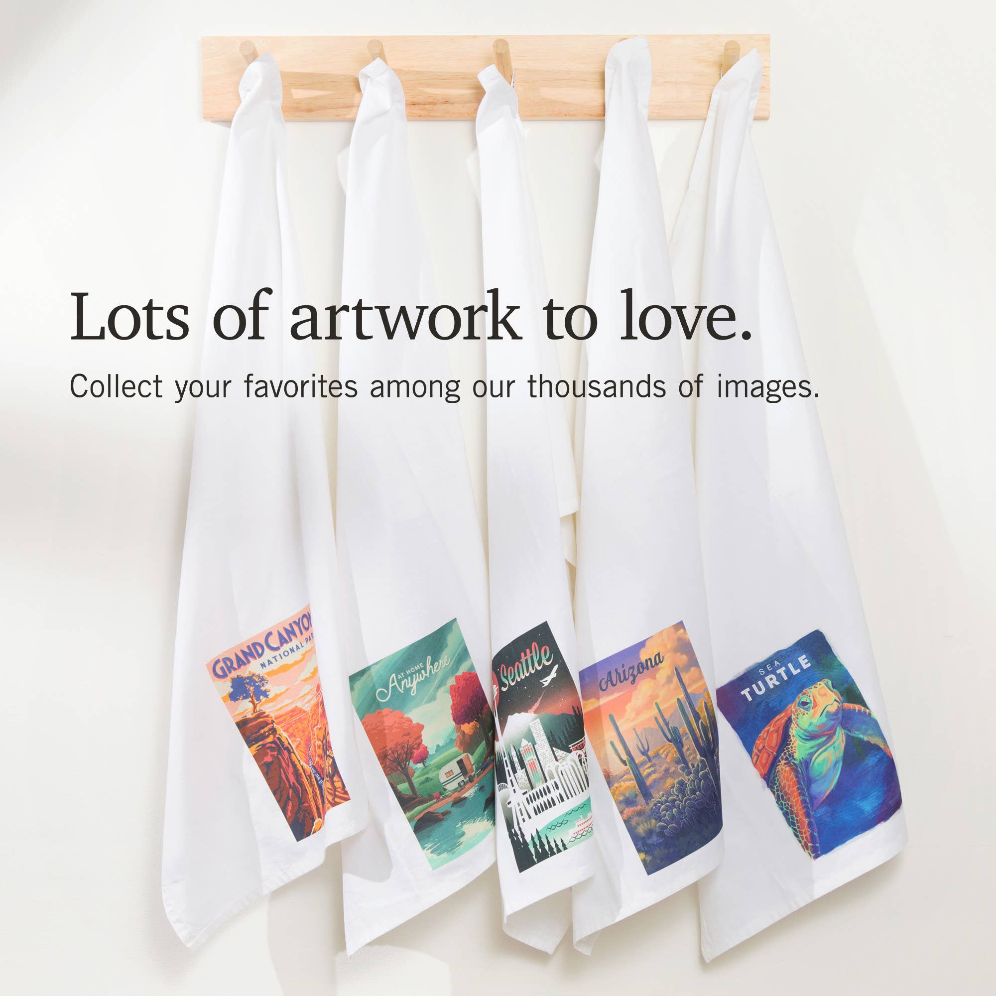 Our 100% Organic Cotton Tea Towels feature our artwork with vibrant printing. We use eco-friendly inks, recycled packaging, sourced responsibly and planet friendly. Printed in USA, supporting domestic production. • 100% Organic Cotton • Measures 18" x 28" Image size approx. 5" x 7.5" • Twill tape loop in corner for hanging • Incredibly soft touch • Very absorbent • Printed in USA with eco-friendly ink • Thank you so much for supporting our small business.