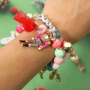 2PCS - HOLLY Nutcracker Holiday Charm Bow Beaded Stretch Multi Layered Bracelets