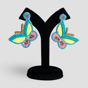 These 'Butterfly Earrings' are a handmade pair of beaded earrings with velvet backing. Our jewelry is rooted in love and tradition. It comprises easy-to-clean necklaces and earrings that are: *Handcrafted *Durable *Light-weight *Hypoallergenic *Statement jewelry