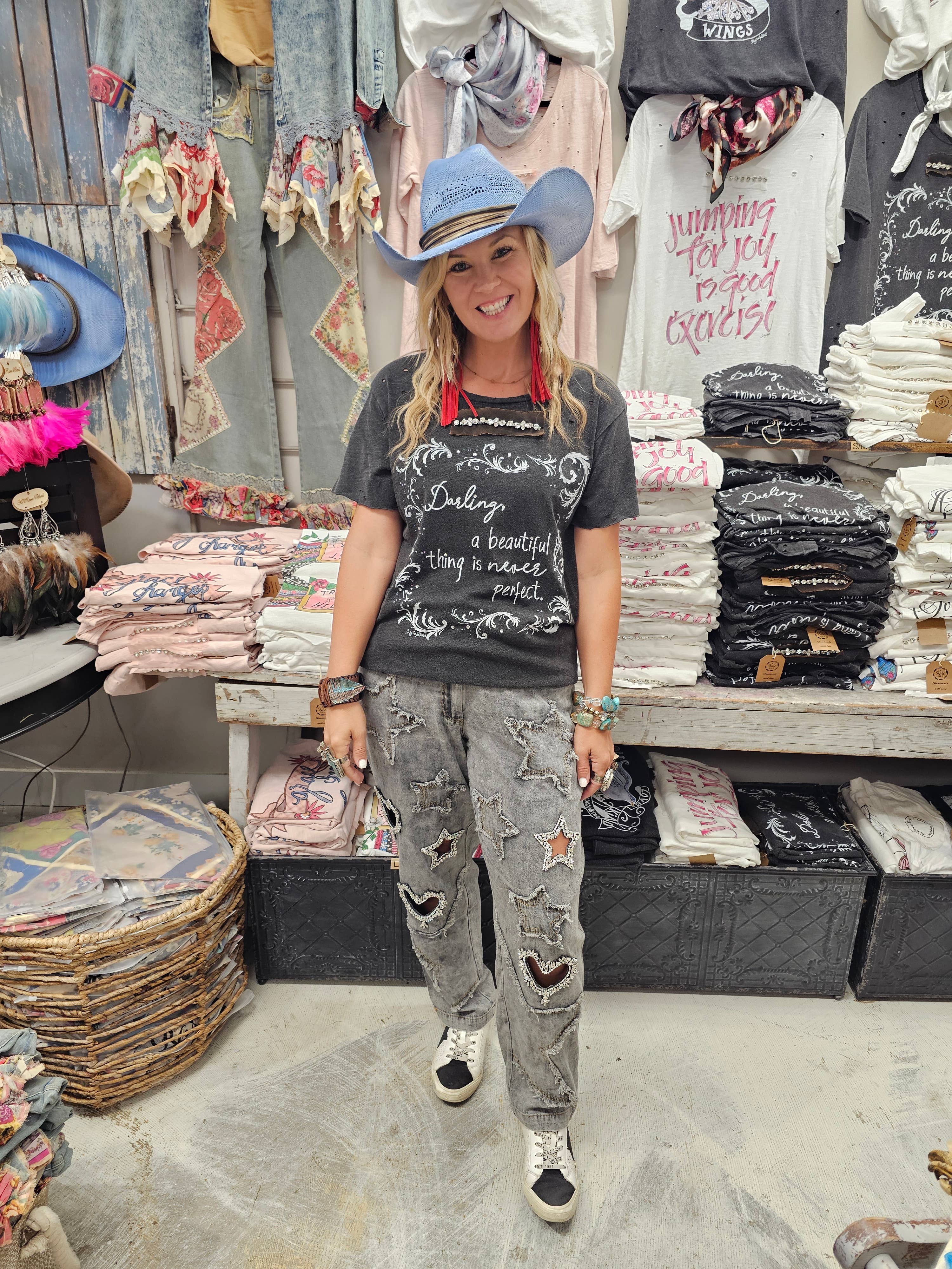 Darling a Beautiful thing is never perfect....ain't it the truth?? We should embrace all of our imperfections and smile through them! Available in S/M and L/XL