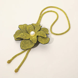 Pearl Centered Bling Studded Flower Pointed Bolo Tie Necklace