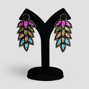 These 'Black Leaf Statement Earrings' are a handmade pair of beaded earrings with velvet backing. Our jewelry is rooted in love and tradition. It comprises easy-to-clean necklaces and earrings that are: *Handcrafted *Durable *Light-weight *Hypoallergenic *Statement jewelry