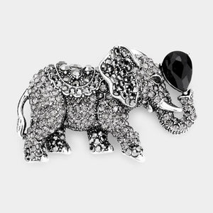 Stone Embellished Elephant Pin Brooch • Size : 2.25" X 1.5" • Pin Brooch • Lead and Nickel Compliant Whimsical elephant-shaped brooch encrusted with vibrant multicolor rhinestones and a teardrop-shaped accent. This charming accessory adds playful personality and a pop of color to jackets, scarves, or bags—perfect for animal lovers and statement jewelry enthusiasts alike.