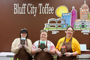November 2022, Monarch Ventures LLC, owned by Madonna Learning Center, purchased Bluff City Toffee. Bluff City Toffee is more than a sweet shop. It is owned and operated by Madonna Learning Center, a training center for adults with special needs. With every purchase, you are helping to empower our adults by providing a vocational opportunity.