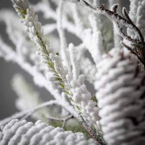 This frosted pine wreath brings a touch of wintery wonder to any space. The frosted pine needles are dusted with a light coating of faux snow, giving it an enchanting snow day vibe, instantly infusing your space with cozy Christmas cheer. Versatile in style, this full, neutral wreath is perfect for a door or mantel display. Add it to an entryway or living room and leave it on display all winter long. -Dimensions: 24"L x4.5"W x24" -Weight: 1.0lbs 5.00oz -Color: White -Material: Plastic -Inner Dimension: 10.25"L x10.25"