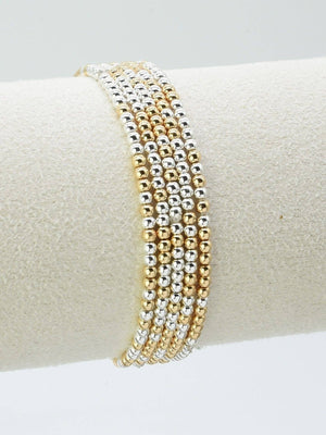 Elevate your style effortlessly with the 2.5mm 5-piece bracelet set. Designed with stretchy bands, these bracelets offer a comfortable, flexible fit that adapts to any wrist size. Perfect for layering or wearing individually, their sleek 2.5mm width adds a subtle yet sophisticated touch to any outfit. Experience versatile elegance that moves with you all day.