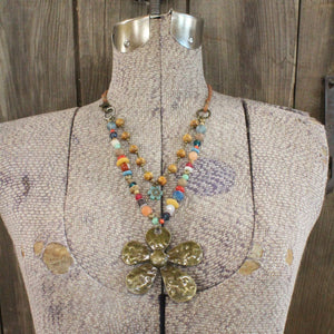 Our ONE-OF-A-KIND jewelry is handcrafted & created just for YOU. We carefully handpick our stones & findings to ensure that each collection allows you to elevate your wardrobe & express your unique style. Our designs are created with vintage czech beads, textured picasso beads, crystals, & natural stones. These natural stones include: amazonite, quartz, fossil, jasper, jade, howlite, hematite, lazuli, turquoise, & more. To top off these designs, each piece will be touched with a mixture of nickel, gunmetal, bronze, silver, & copper metals.