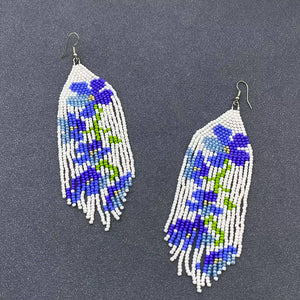 Hand-woven Blue Flowers Seed Beads Fringe Earrings - SB