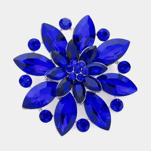 Showcase timeless beauty with this elegant royal blue crystal flower brooch. Designed with sparkling marquise and round rhinestones, this dazzling floral pin is set in a shiny silver-tone metal that enhances its rich, vibrant color. Perfect for accessorizing jackets, scarves, dresses, handbags, and hats, this brooch brings sophistication to any look. Whether for weddings, parties, or daily elegance, this rhinestone flower brooch makes a bold and beautiful statement. Also an ideal gift for women who love luxurious and colorful jewelry pieces.