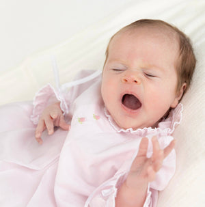 Wrap your little blessing in a timeless classic that is perfect for bringing baby home, christenings or treasured pictures. Made with premium 100% cotton woven fabric. Hand sewn with a ruffled collar and hand embroidered bullion roses down the front and on the hem. “Every Good and Perfect Gift is From Above” is lovingly hand embroidered in script across the bottom hem of the gown. This craftsmanship in this gown is exquisite.