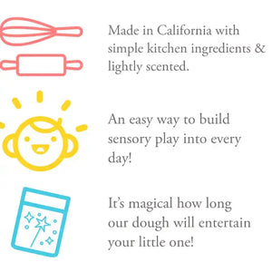 Magical Sensory Dough Paired with Toys & Trinkets Retailers sell our Large jars from $19.99 - $23.00 depending on clientele. This jar is LARGE (16 oz), includes over 10 oz of dough and lots of toys & trinkets. The Magical Dough is batch-made in our shop, and jarred by hand. Small parts, ages 3+