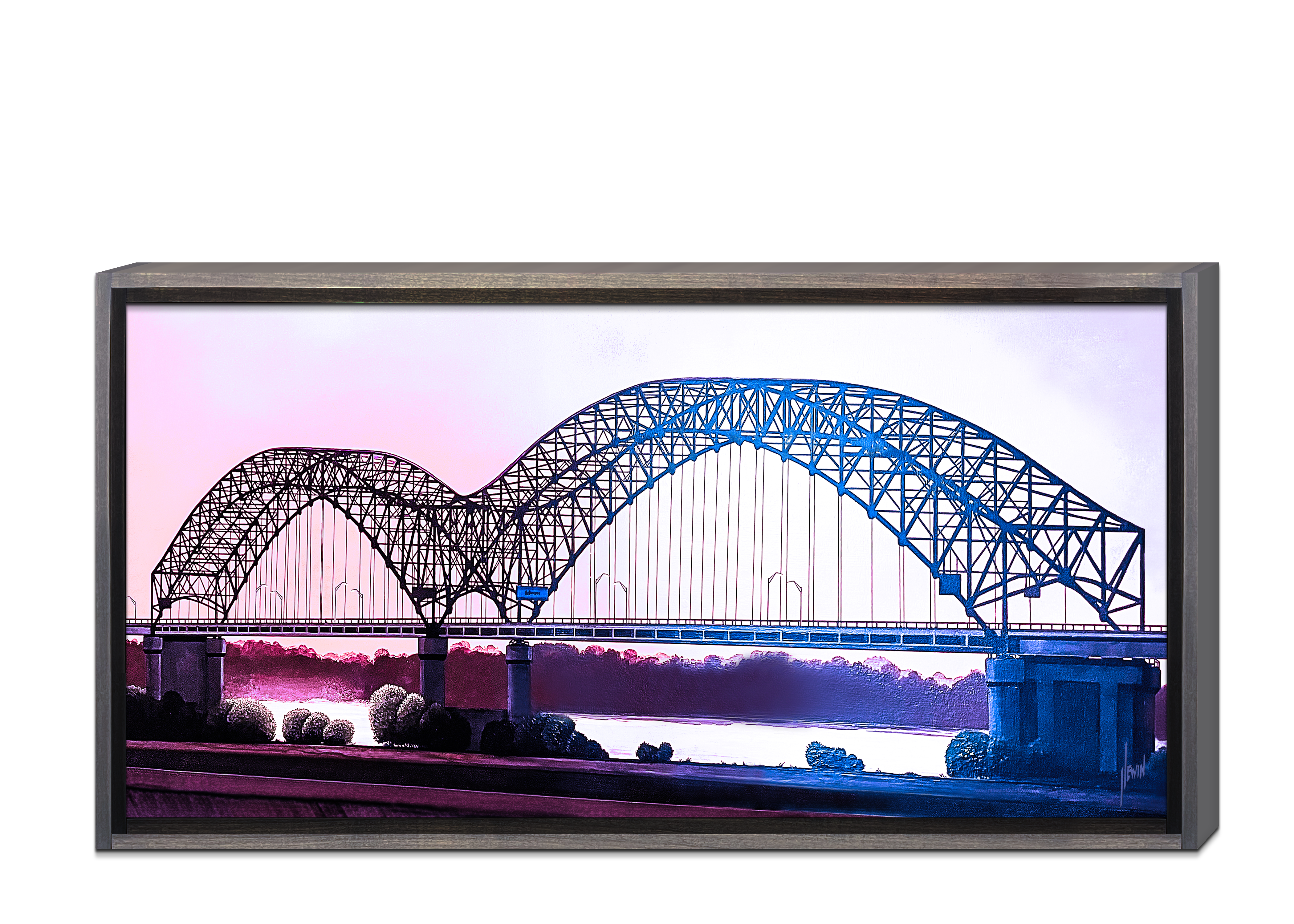 Capture the spirit of Memphis with this dynamic artwork celebrating one of the city's most iconic landmarks. Jeremy Lewin, a local Memphis artist, brings fresh perspective and creative energy to this bridge masterpiece. Whether you're a proud Memphian, architecture enthusiast, or someone who loves bold local art, this piece celebrates the bridges that connect us—literally and figuratively. Display it and let your walls tell the story of this vibrant city.